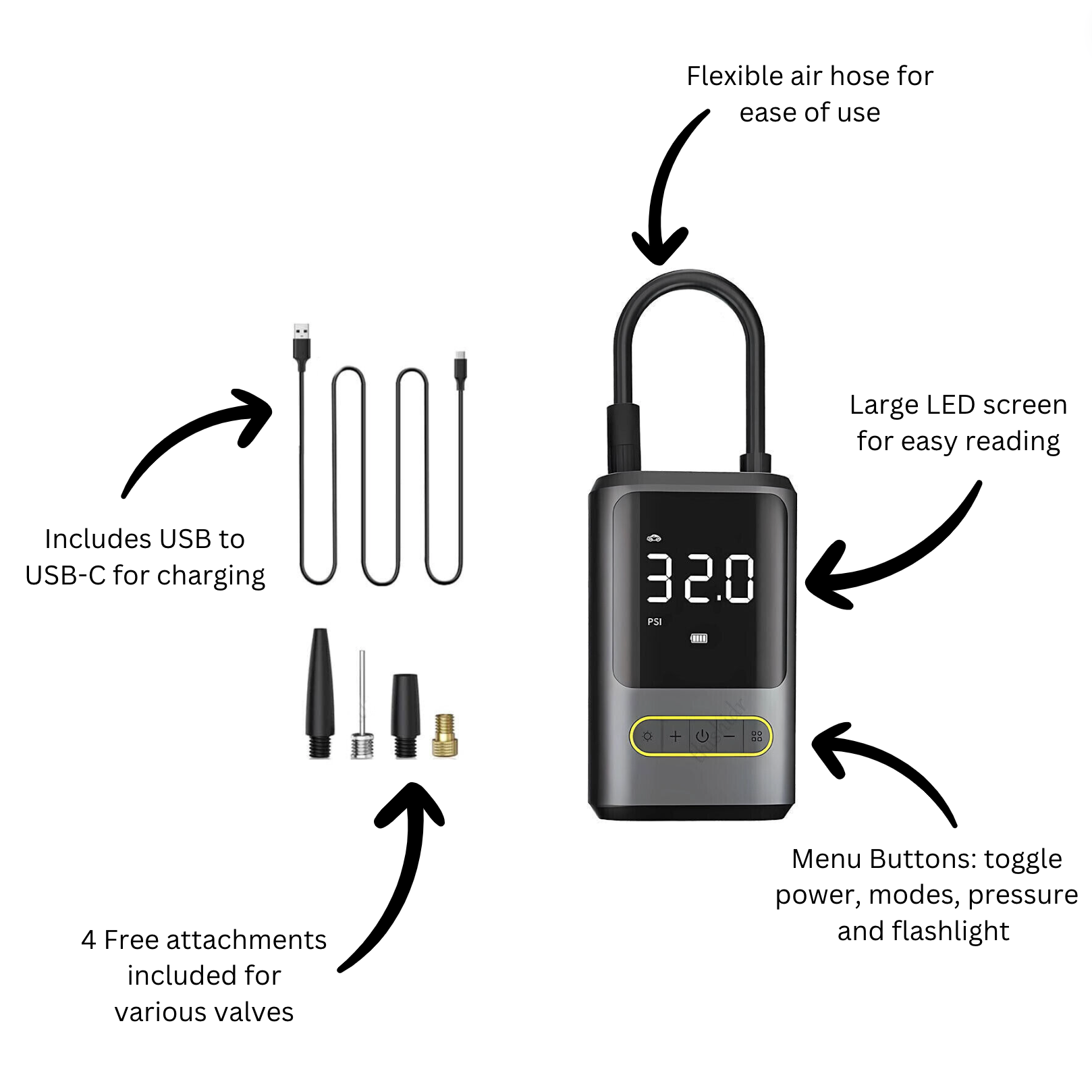 AirCharge Pro™ | Den ultimata bärbara 4-i-1-däckpumpen🚗