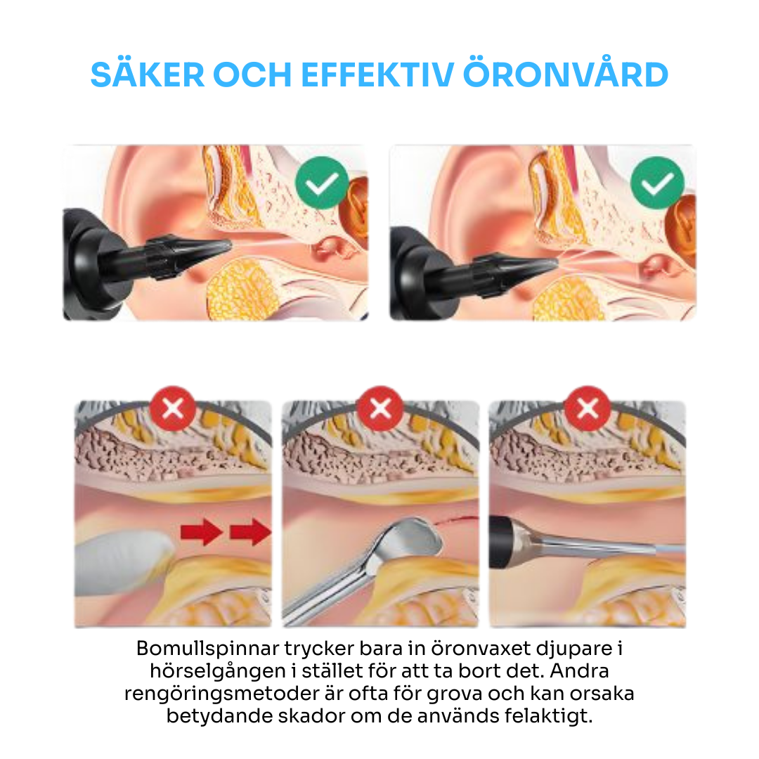 - Bonus: Uppsamlingsbehållare för örat för rengöring utan smuts