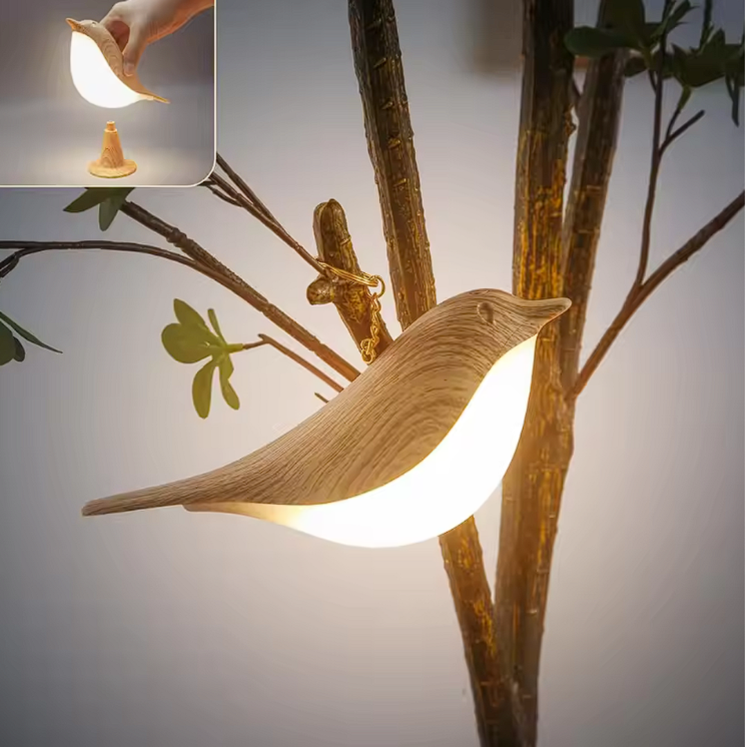 Naturinspirerat mästerverk: Den eleganta fågelformade designen på en elegant träbas utstrålar en naturlig, lugnande energi. Denna tidlösa, naturinspirerade lampa tillför en förtrollande charm till din interiör samtidigt som den utan ansträngning blandar elegans med lugn.