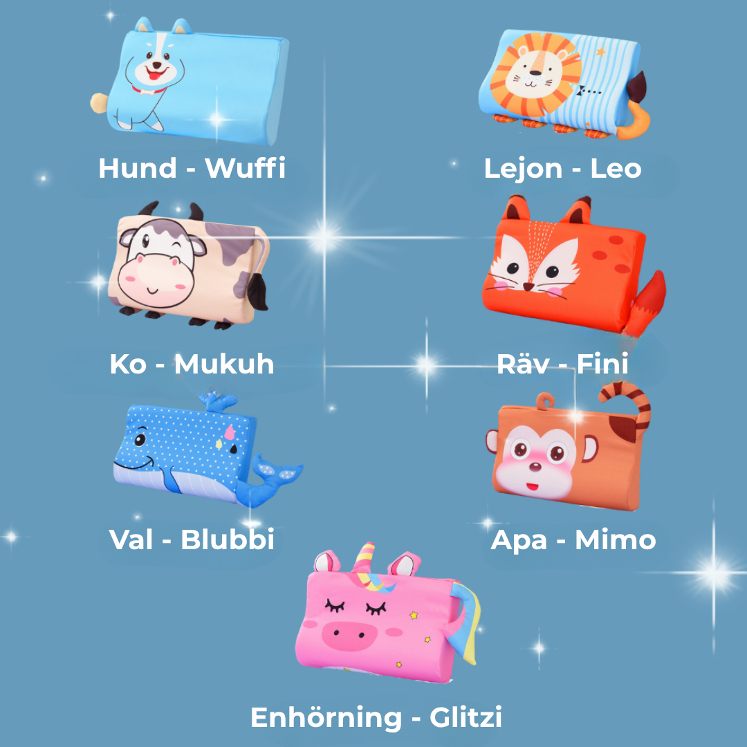 Det mjuka minnesskummet ger ett skonsamt, stödjande underlag. De integrerade öronen och svansarna främjar självreglering och har en lugnande effekt – vilket hjälper barnet att slappna av snabbare och sova djupare. Perfekt för en bra start på dagen!