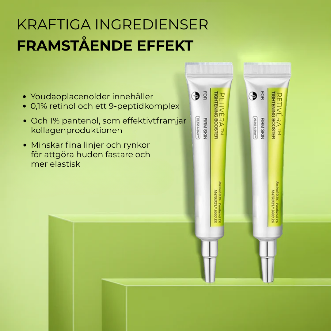 På bara 2 veckor hjälper RetiVéra™ till att minska fina linjer, släta ut rynkor och ge huden ett fastare och klarare utseende. Upplev den märkbara förvandlingen och återfå ditt ungdomliga självförtroende — älskat och rekommenderat av tusentals världen över.