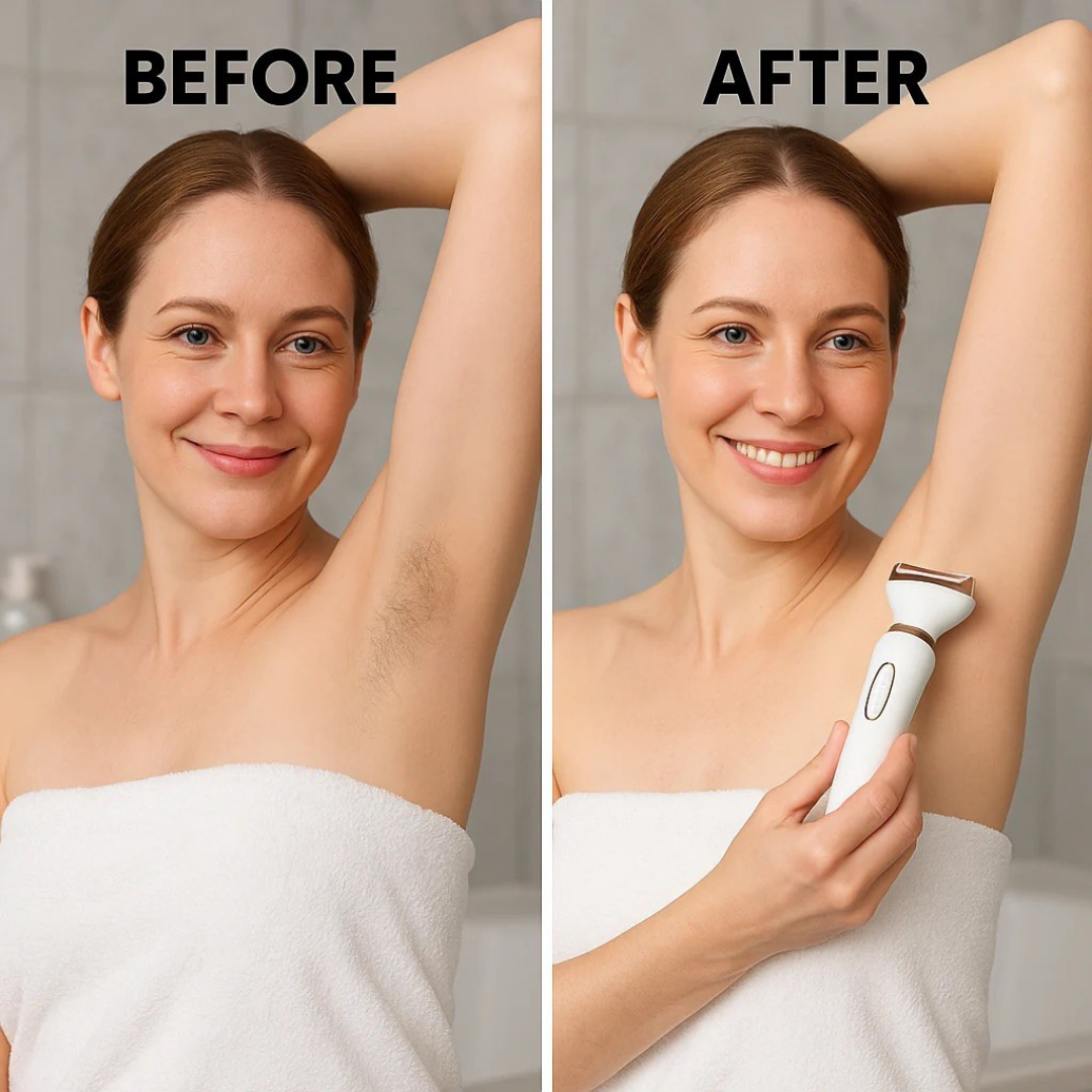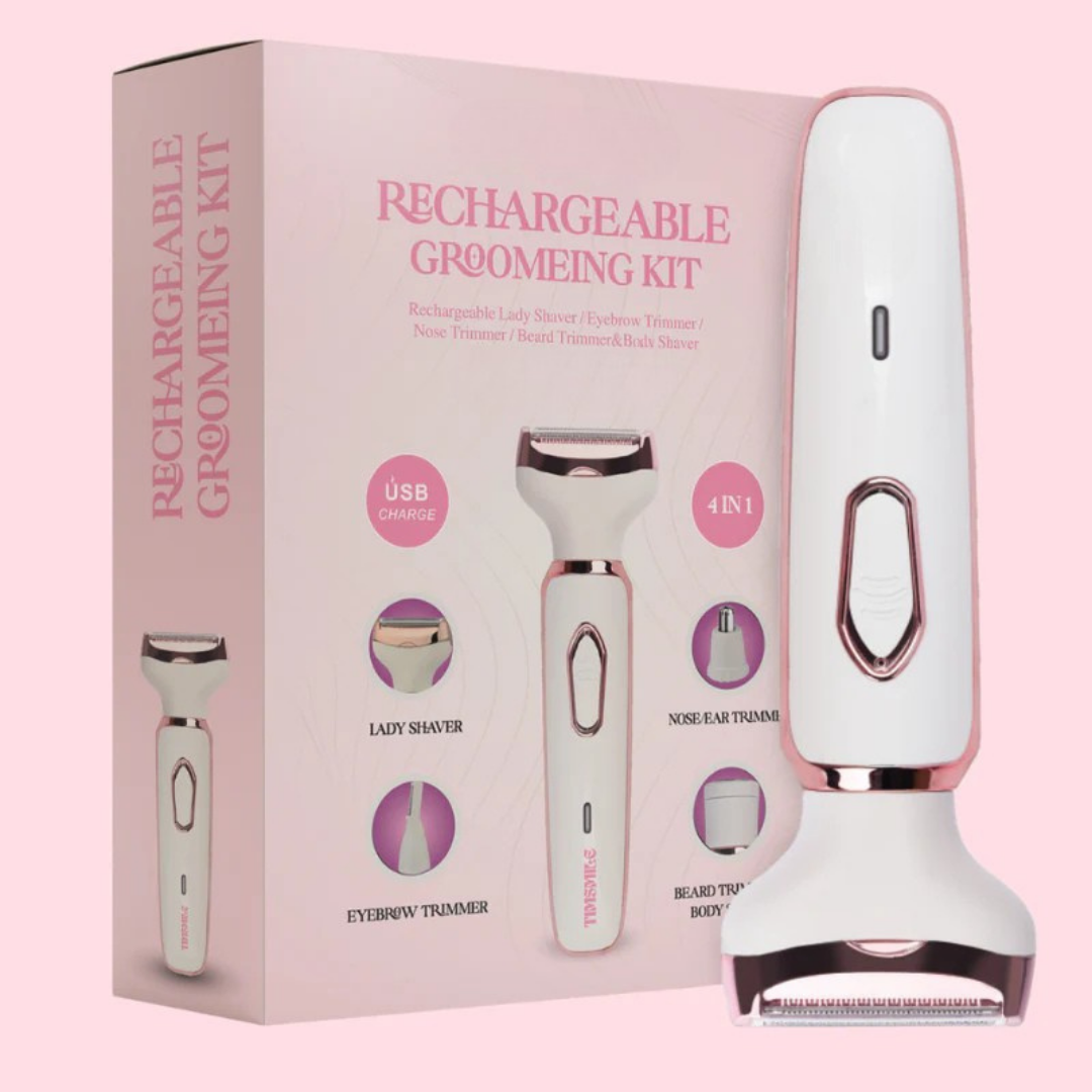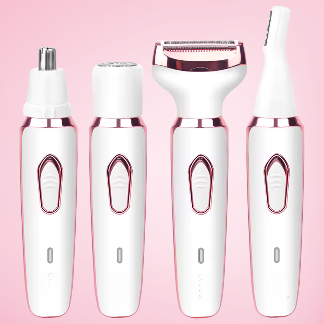 Raka, trimma, forma och groom med 4 lätt utbytbara huvuden – från armhålor till bikinilinjer, ögonbryn till dunhår.
