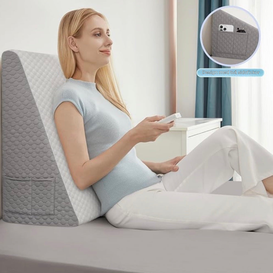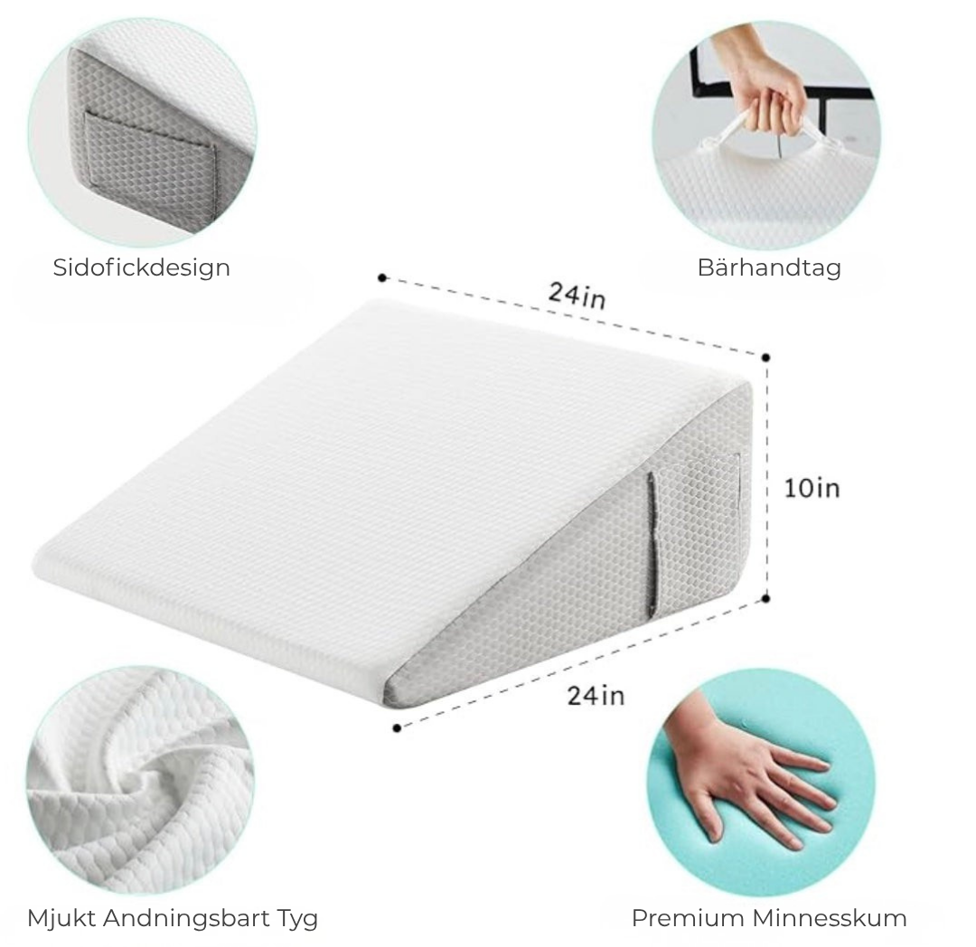 Sleqo™ fungerar genom att höja överkroppen, vilket minskar trycket på luftvägarna och främjar bättre luftflöde för lättare andning.