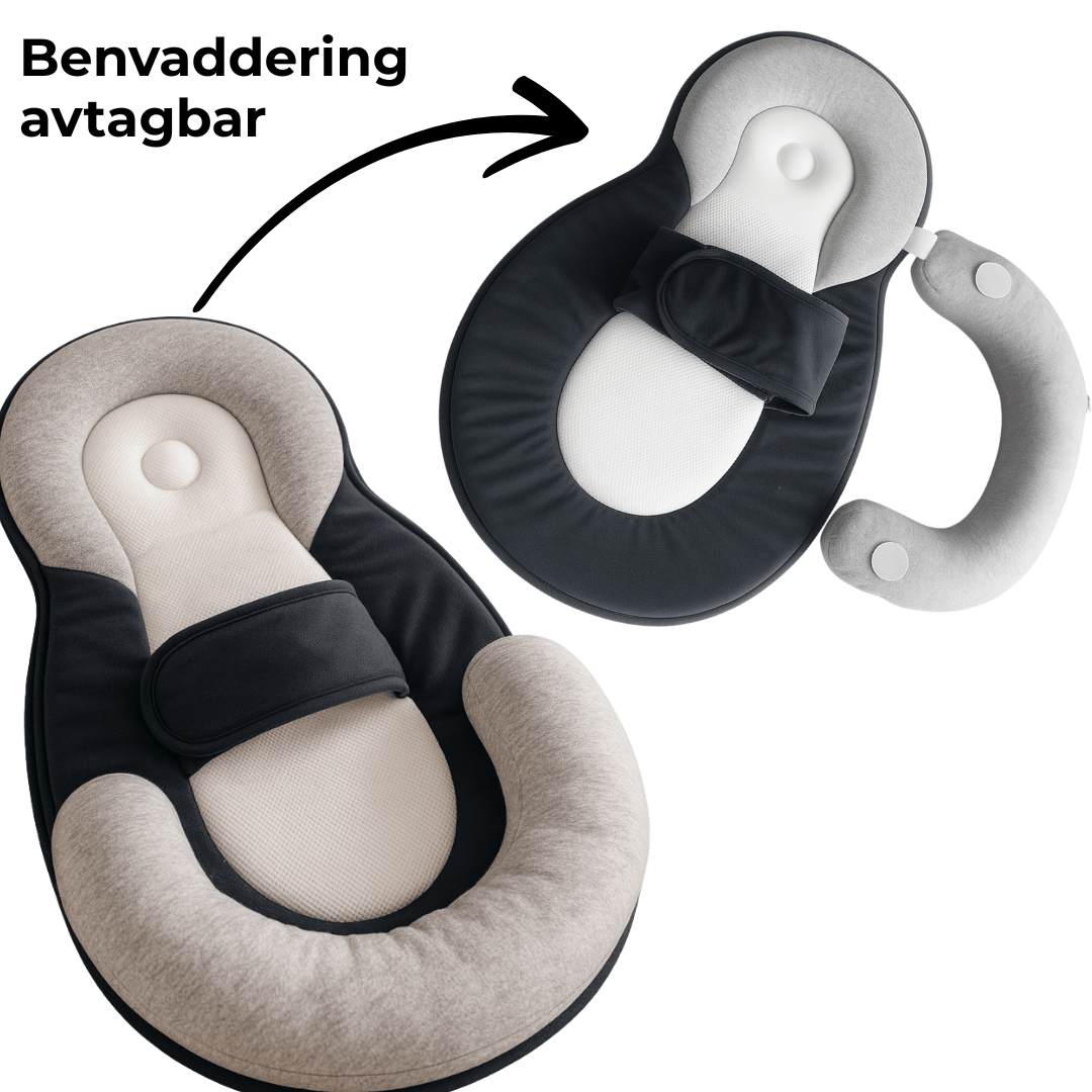 Den ergonomiska designen fördelar trycket jämnt, vilket hjälper till att förebygga platt huvud och ge barnet ett naturligt sovläge.
