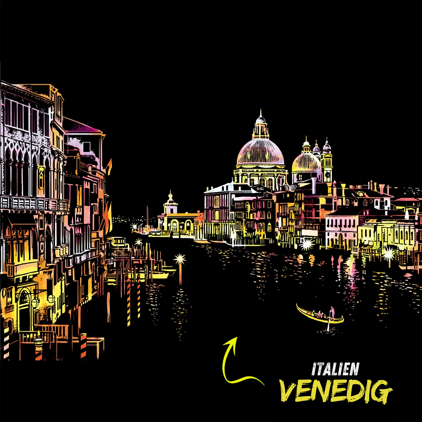 StadCanvas™ är en harmonisk skapandeupplevelse där en grå yta döljer ett färgstarkt motiv av ikoniska städer och landmärken.