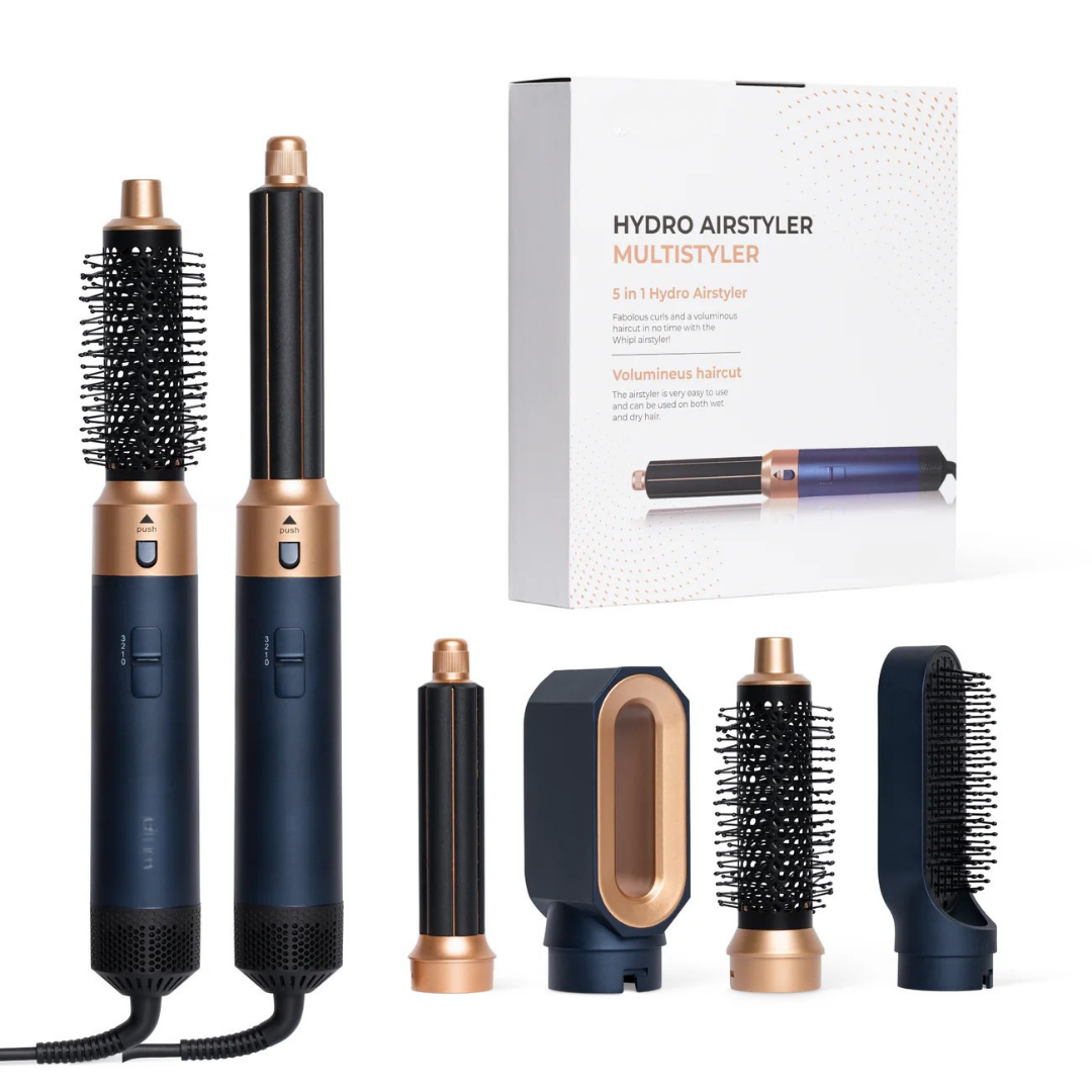 ✔️ 5x Premium-tillbehör (Pre-Styling-tork, utjämningsborste, locktänger, rund volymborste)
